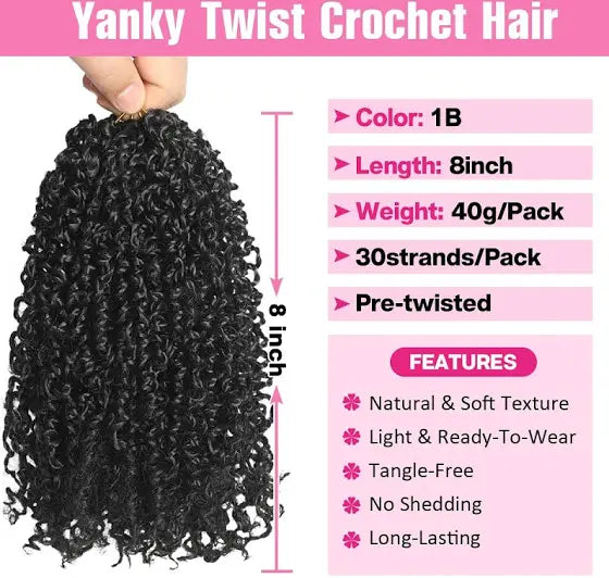 8 Inch Pre-looped Yanky Twist Crochet Hair 30 8 packs Strands/PCS Pre-twisted Passion Twist Crochet Hair